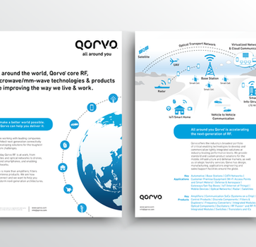 During my time at Qorvo as a graphic designer, I worked on a variety of projects, including marketing materials, brand design, print design (hard-line and soft-line), illustration, corporate graphics, social media graphics, and more.